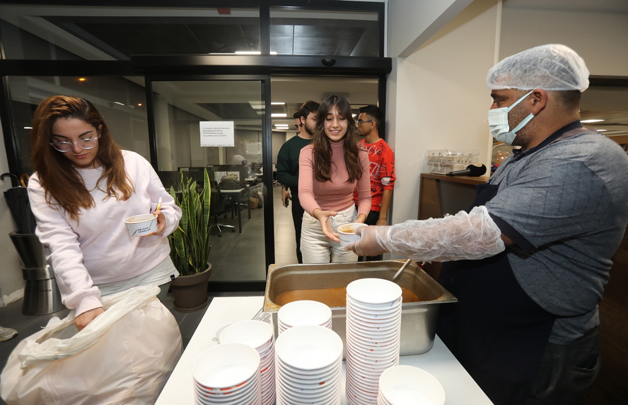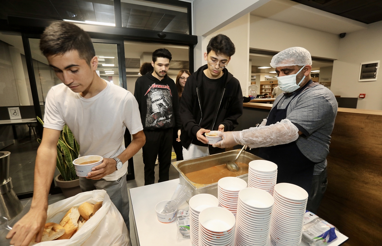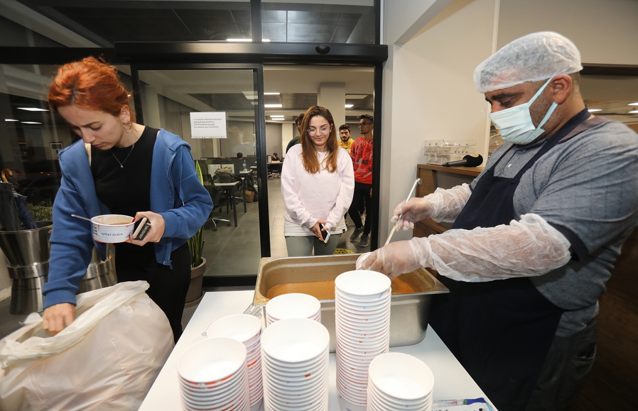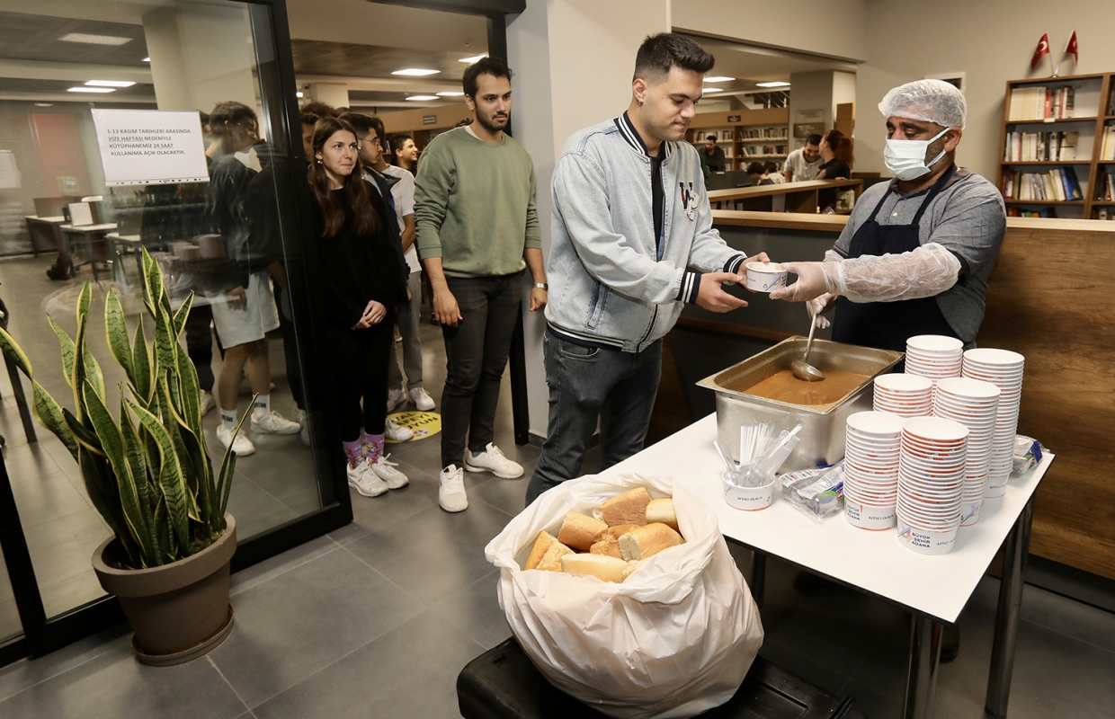 Büyükşehir Belediyesi’nce çorba ikramı yapılıyor. Öğrenciler yoğun ders çalışma