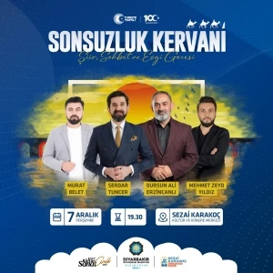 Diyarbakır Büyükşehir Belediyesi tarafından "Sonsuzluk Kervanı" şiir, sohbet ve ezgi programı düzenlenecek.