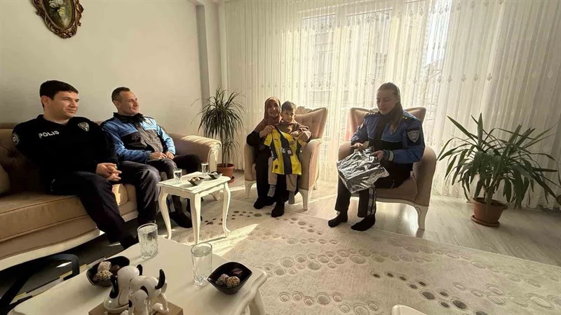 Tekirdağ İl Emniyet Müdürlüğü ekipleri, 2021 yılında şehit olan Çarşı ve Mahalle Bekçisi Fırat Doğan’ın ailesini ziyaret etti. Forma hediyelerini alıp polis ablalarıyla eğlendiler.