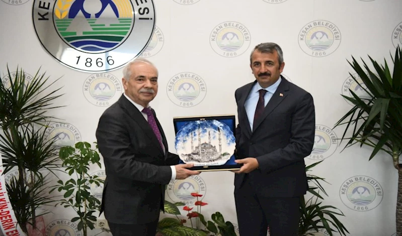 Edirne Valisi Yunus Sezer, 31 Mart 2024 tarihinde gerçekleştirilen Mahalli İdareler Genel Seçimlerinde Keşan Belediye Başkanı olarak seçilen Op. Dr. Mehmet Özcan’ı makamında ziyaret etti.
