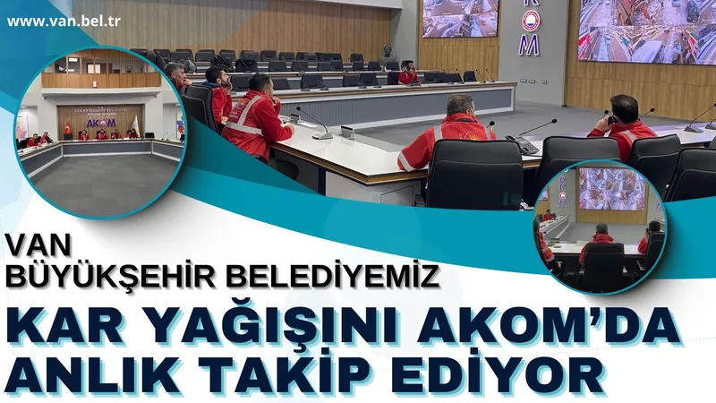 Van Büyükşehir Belediyesi, kentte etkili olan kar yağışını Afet Koordinasyon Merkezi'nde (AKOM) anlık olarak izliyor.