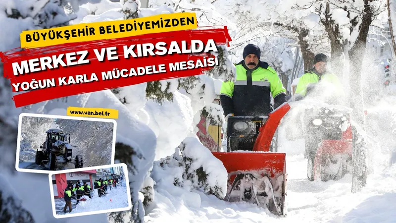 Van Büyükşehir Belediyesi, kenti etkisi altına alan yoğun kar yağışının ardından karla mücadele çalışmalarını aralıksız sürdürüyor. Kent merkezinde ana arterler, cadde ve sokaklarda kar küreme, tuzlama ve temizlik faaliyetleri devam ederken, ulaşımın aksamaması için ekipler gün boyu sahada görev başında.