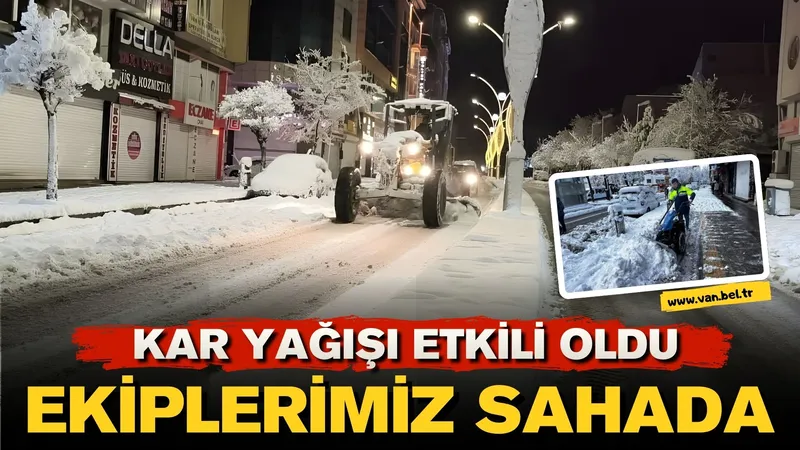 Van'da dün akşam saatlerinden itibaren etkili olan kar yağışı, kent genelini beyaza bürüdü. Gece boyunca aralıksız devam eden çalışmalarla ulaşımda aksamaların önüne geçilmeye çalışıldı.