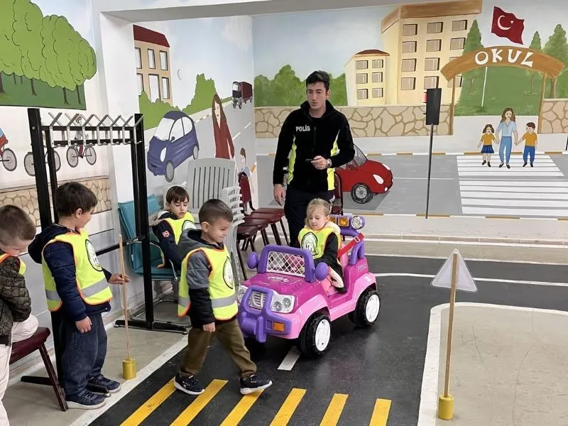 Trafik polisleri, çocuklara güvenli geçiş yöntemlerini uygulamalı olarak gösterdi. Küçük yaşta trafik farkındalığının önemine dikkat çeken ekipler, Toplum Destekli Polislik faaliyeti çerçevesinde trafik bilinci oluşturmayı hedefledi. Çocukların günlük hayatta karşılaşabilecekleri trafik ortamını tanımaları sağlandı.