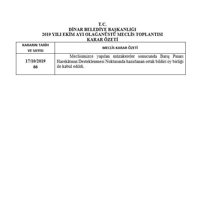 2019 YILI EKİM AYI OLAĞANÜSTÜ MECLİS KARAR ÖZETİ