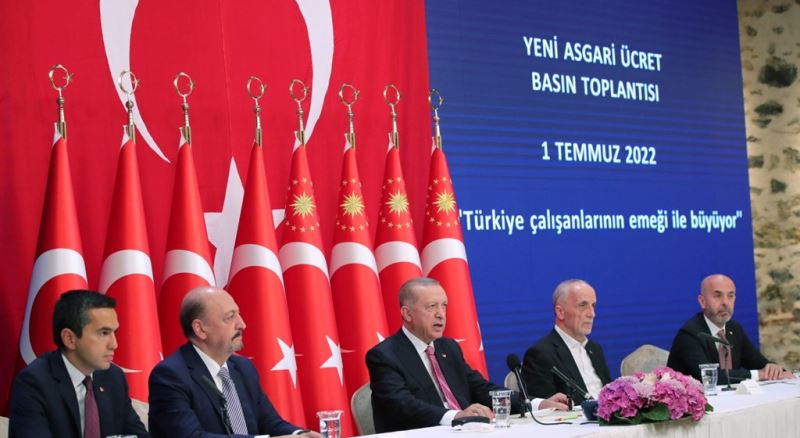 Asgari Ücret Tespit Komisyonu’nun 2022 yılı için yeni asgari ücret rakamının belirlenmesi amacıyla yürüttükleri çalışmaların ardından Temmuz ayından itibaren geçerli olacak yeni asgari ücret tutarı Cumhurbaşkanı Recep Tayyip Erdoğan tarafından Dolmabahçe Çalışma Ofisi’nde düzenlenen basın toplantısında yüzde 30 oranında yapılan zam ile 5 bin 500 TL olarak açıklandı.