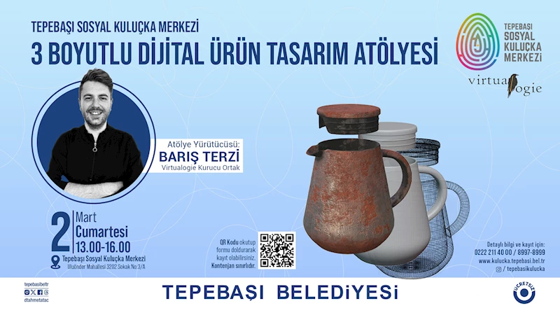 Bu kapsamda Tepebaşı Sosyal Kuluçka Merkezi ve Virtualogie Tasarım Düşüncesi iş birliği ile ‘3 Boyutlu Dijital Tasarım Atölyesi’ düzenlenecek. Atölye yürütücülüğünü Virtualogie Kurucu Ortağı Barış Terzi’nin yapacağı atölye kapsamında katılımcıların, ürettikleri veya üretmeyi planladıkları ürünlerin dijital ortamdaki katı modellerini tasarlayabilmeleri için temel yöntemlerin paylaşılması amaçlanıyor. Atölye sürecinde açık kaynak kodlu ve ücretsiz bilgisayar programlarından yararlanma imkanı bulacak katılımcılar, 3 bölümden oluşacak atölyenin ilk bölümünde ‘Temel modelleme yöntemleri ve katı modellemenin ürün tasarımına katkısı’, ikinci bölümde ‘İlgili program ile temel katı modelleme yöntemlerinin uygulanması’ anlatılacak. Üçüncü bölümde ise ‘Katılımcıların atölye yürütücüsünün danışmanlığında 3 boyutlu basit ürün tasarlaması’ yapması istenecek.
