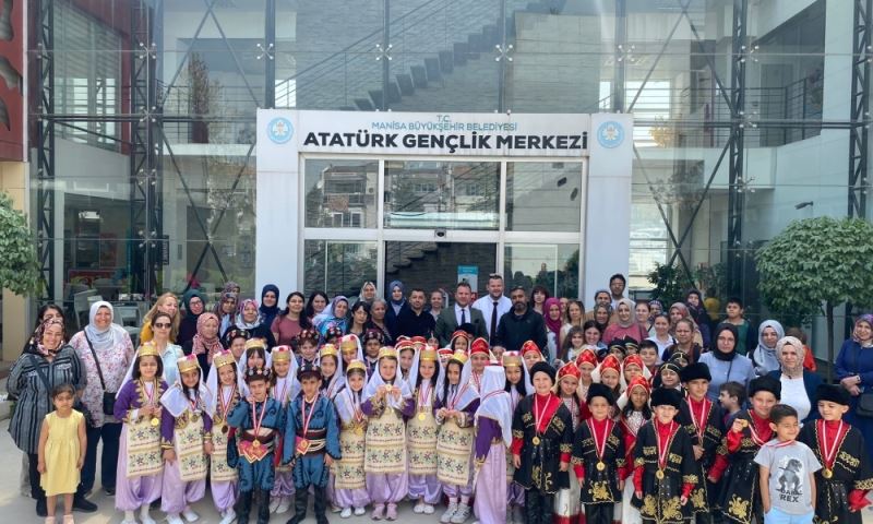 Her yaştan Manisalıya ilgi duydukları alanda kendilerini geliştirmeleri amacıyla Manisa Büyükşehir Belediye Başkanı Cengiz Ergün öncülüğünde hayata geçirilen Atatürk Gençlik Merkezi’nde eğitim gören çocuk halkoyunları kursiyerleri, dönem sonu gösterisi gerçekleştirdi. Gösteriyi Manisa Büyükşehir Belediyesi Kültür ve Sosyal İşler Dairesi Başkanı Fırat Özcan, Atatürk Gençlik Merkezi Sorumlusu Ahmet Kaplan, kurs eğitmenleri ve kursiyerlerin aileleri takip etti. Dönem boyunca öğrendikleri figürleri başarıyla icra eden kursiyerler, büyük alkış aldı. Gösteri sonunda Kültür ve Sosyal İşler Dairesi Başkanı Fırat Özcan, 23 Nisan’da yaptıkları gösteri ve dönem sonu gösterileri nedeniyle kursiyerleri tebrik ederek, kursu başarıyla tamamlayan miniklere madalya takdim etti.