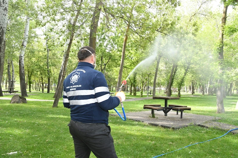 AKSARAY BELEDİYESİ PARK VE MİLLET BAHÇELERİNDE İLAÇLAMA ÇALIŞMASI GERÇEKLEŞTİRİYOR
