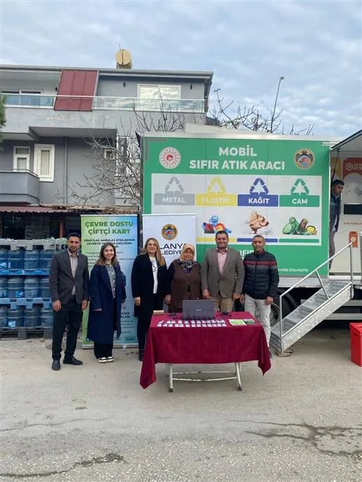 Alanya Belediyesi, Antalya Büyükşehir Belediyesi'nin tarım alanlarında kullanılan zirai ilaç ambalajlarının doğaya verdiği zararı önlemek amacıyla hayata geçirdiği Çevre Dostu Çiftçi Kart Projesi'ni semt pazarlarında tanıtarak çevreye ve tarıma katkı sağlamaya devam ediyor.
