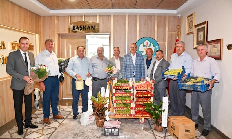 Üretken belediyecilik anlayışıyla il genelinde hizmet ve yatırımlarına devam eden Manisa Büyükşehir Belediyesi’nin çalışmaları mahalle muhtarları ve vatandaşlar tarafından takdirle karşılanıyor. Bu kapsamda Alaşehir ilçesi Belediye Meclis Üyesi Mehmet Erdal, Horzumkeserler Mahallesi Muhtarı Mehmet Eren, Kozluca Mahallesi Muhtarı Adem Gezer, Uluderbent Mahallesi Muhtarı Hüsamettin Afa, Çarıktekke Mahallesi Muhtarı Mustafa Çetin, Kasaplı Mahallesi Muhtarı Halil Kaymak, Toygarlı Mahallesi Muhtarı Yusuf Aşkın ve Kavaklıdere Mahallesi Muhtarı Salih Taşlıyol, Manisa Büyükşehir Belediye Başkanı Cengiz Ergün’e teşekkür ziyaretinde bulundu. Ziyarette, Büyükşehir Belediyesi Genel Sekreter Yardımcısı Ali Öztozlu, Yol Yapım, Bakım ve Onarım Dairesi Başkanı Kurtuluş Kuruçay ve Muhtarlık İşleri Şube Müdürü Himmet Güneş de yer aldı. Mahalle muhtarları ile tek tek selamlaşan Başkan Ergün’e muhtarlar çiçek takdim etti, yetiştirdikleri yöresel ürünlerden hediye etti.