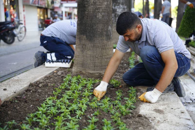 Antalya Büyükşehir Belediyesi, yaz aylarının gelmesiyle birlikte cadde, refüj ve parkları rengarenk çiçeklerle donatıyor. Peyzaj çalışmaları kapsamında 300 bin çiçek toprakla buluşturdu.