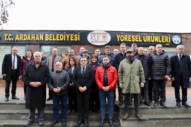 Ardahan Belediyesi ile Osmaniye’yi kardeş kent ilan ettiklerini aktaran Başkan Demir; “Depremin ilk gününden itibaren Ardahan belediyesi Ardahan ve Ardahanlılar olarak elimizden gelen ne varsa bölgeye yardımda bulunmaya çalıştık. İzmir Büyükşehir Belediyesi ile birlikte Ardahan belediyesi ilk defa bir kavurma tesisi oluşturdu. Ürünlerimizi yaptık satış mağazamızı hazırladık. Fakat biz Ardahanlılar olarak yardımlaşmayı dayanışmayı sevgiyi ve acıyı paylaşmayı iyi biliriz. Onun için de bu kavurmalarımızı Ardahan kavurmasını ürettiğimiz ilk ürünlerimizi satışa ya da Ardahan’da tüketmek yerine afet bölgesinde ki depremzede kardeşlerimize göndermeyi Belediye meclis üyelerimizle birlikte Ardahanlılar olarak uygun gördük. Dolayısıyla İzmir Büyükşehir Belediye başkanımız sayın Tunç Soyer ve Ardahan belediyesi olarak birlikte kurduğumuz bu kavurma fabrikasında ürettiğimiz ilk ürünleri bugün itibariyle 1 ton Ardahan kavurmasını afetzedelerimize Osmaniye'ye gönderiyoruz. 500 kg kavurmayı da AFAD’a teslim edeceğiz. AFAD isterse Ardahan’ımızda konuk olan afetzedelere verebilir isterse bölgeye gönderebilir. Biz ilk sevkiyatımızı Osmaniye’ye gönderiyoruz. İzmir Büyükşehir Belediyesi ve Ardahan Belediyesi Osmaniye’yi kardeş kent ilan ederek deprem yaraları sarılıncaya kadar Artvin’de dahil olmak üzere bu üç il Osmaniyeli kardeşlerimizin yanında olacak. Kaç yıl sürerse bu acıyı dininceye kadar. Şu anda orada İzmir Büyükşehir Belediyesi ve Ardahan Belediyesi ve Artvin Belediyesi gerekli ekipmanıyla gerekli çalışmalarıyla çadır kentleri ile yemekhaneleri ile aşevleri ile Osmaniye’de şu anda çalışmalarına devam ediyor. Bizde depremin ilk gününde olduğu gibi bugün de il sevkiyatımızı gönderiyoruz, yaralarını acılarını paylaşıyoruz” diye konuştu.