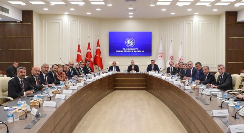Çalışma ve Sosyal Güvenlik Bakanı Vedat Işıkhan, Çalışma ve Sosyal Güvenlik Bakanlığı Reşat Moralı Toplantı Salonu’nda 6 Şubat depremlerinden etkilenen iller ile ilgili değerlendirme toplantısına katıldı.