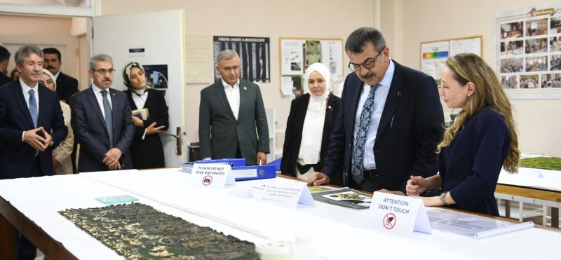 Bakan Yusuf Tekin, Anadolu'nun geleneksel dokumalarının aslına uygun modern tasarımlarla dünyaya tanıtılması amacıyla İstanbul Sabancı Beylerbeyi Olgunlaşma Enstitüsü tarafından yürütülen "Türkiye Dokuma Atlası Projesi" kapsamında el dokuması ürünleri inceledi.