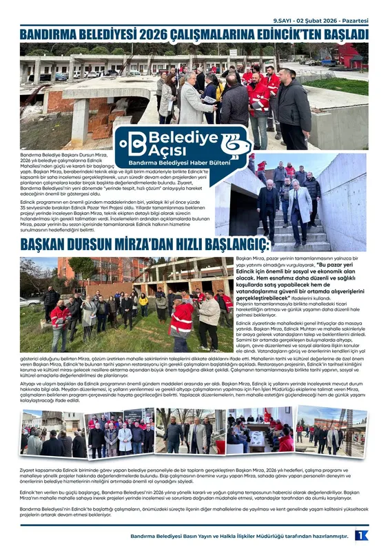 Bandırma Belediyesi'nin 'Belediye Açısı' Bülteni 9. Sayıda