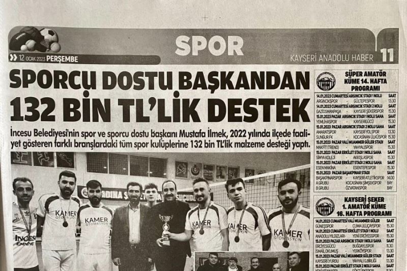 İncesu Belediye Başkanı Av. Mustafa İlmek, 2022 yılında ilçe genelinde farklı branşlarında toplam 132 Bin TL'lik yatırım ve destek sağladı. Kayseri,İncesu Belediyesi