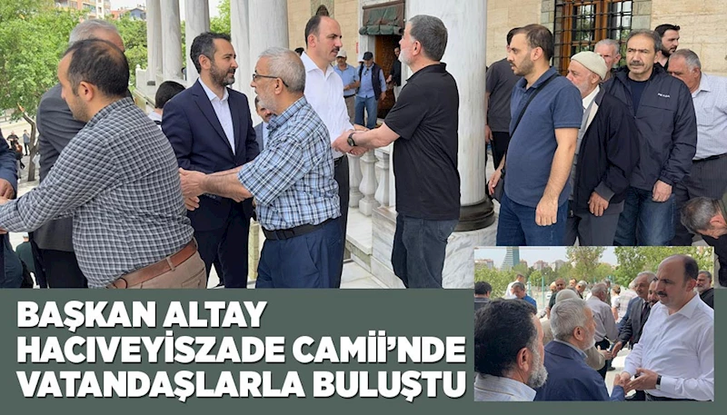 Başkan Altay, bu hafta Cuma namazı sonrası Hacıveyiszade Camii’nde vatandaşlarla selamlaşarak mübarek cumalarını tebrik etti. Cuma Buluşmaları kapsamında Konyalılarla buluşarak mübarek Cuma’nın feyzinden ve bereketinden istifade ettikleri için çok mutlu olduklarını ifade eden Başkan Altay, “Bu hafta şehrimizin manevi önderlerinden Hacıveyiszade hocamızın ismini taşıyan camimizde vatandaşlarımızla hasbihal ettik. Güzel düşüncelerini bizimle paylaşan tüm hemşehrilerime şükranlarımı sunuyorum Bu şehri daha da güzelleştirmek ve Konyalıların mutluluğunu artırmak için gece gündüz çalışıyoruz” ifadelerini kullandı.