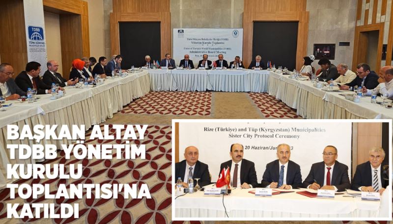 Rize Belediyesi’nin ev sahipliğinde gerçekleştirilen TDBB Yönetim Kurulu Toplantısı’nda konuşan Başkan Altay, Cumhurbaşkanı Recep Tayyip Erdoğan'ın memleketi Rize ile Kırgızistan Cumhurbaşkanı Sadır Caparov'un memleketi Tüp şehri arasında kardeş şehir ilişkisinin başlangıcını gerçekleştirdiklerini ifade etti.