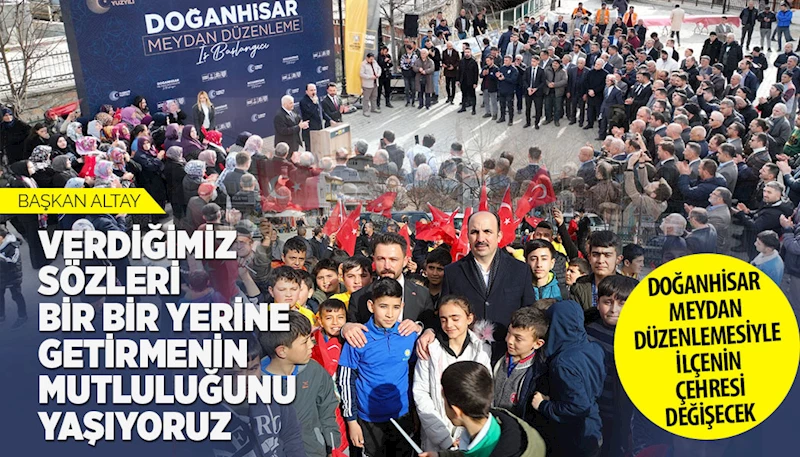 İçinde yüzme havuzu bulunan şehir konağı, mahalle yolları, çok amaçlı salonlar, halı sahalar, KOSKİ’nin altyapı çalışmaları, parke taşı destekleriyle birlikte günden güne daha iyiye giden bir Doğanhisar’ın ortaya çıktığını vurgulayan Başkan Altay, “Bugün bu işleri taçlandıracak bir işin başlangıcını yapıyoruz. Bu meydanı Konya’mıza, Doğanhisar’ımıza yakışır bir hale getireceğiz. Yaklaşık 44 milyon lira bedelle inşallah en kısa sürede bu işi tamamlayacağız ve burası pırıl pırıl, insanların bir araya gelmekten keyif alabileceği bir mekan haline dönüşecek” ifadelerini kullandı.