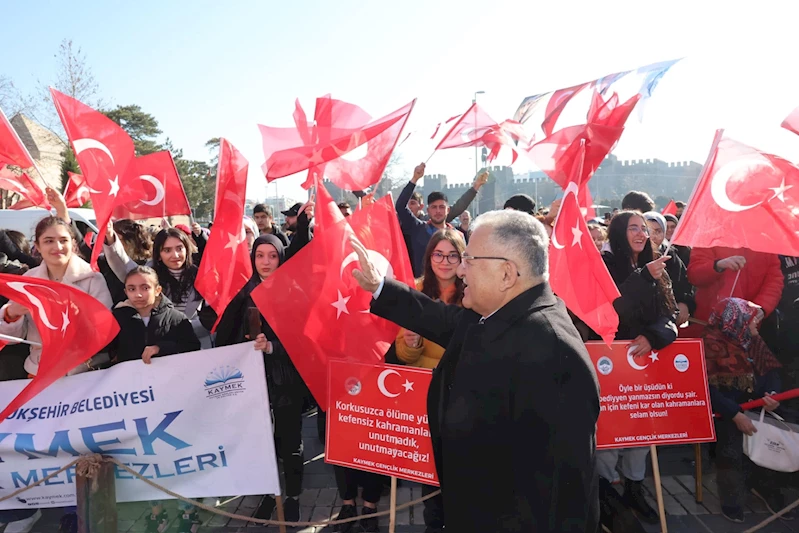 Kayseri Büyükşehir Belediye Başkanı Dr. Memduh Büyükkılıç, Sarıkamış Şehitlerini Anma Programı kapsamında KAYMEK Gençlik Merkezleri’nde eğitim gören öğrencilerin tiyatral gösterisini izledi. Başkan Büyükkılıç, “Sarıkamış Şehitlerini rahmetle minnetle anıyorum” dedi.Kayseri Cumhuriyet Meydanı’nda Sarıkamış Harekâtı’nın 109’uncu yıl dönümü dolayısıyla düzenlenen şehitleri anma programına Büyükşehir Belediye Başkanı Dr. Memduh Büyükkılıç’ın yanı sıra AK Parti Kayseri Milletvekilleri Şaban Çopuroğlu, Murat Cahid Cıngı, AK Parti İl Başkanı Fatih Üzüm, Melikgazi Belediye Başkanı Mustafa Palancıoğlu, Kocasinan Belediye Başkanı Ahmet Çolakbayrakdar, Talas Belediye Başkanı Mustafa Yalçın, Hacılar Belediye Başkanı Bilal Özdoğan, Kayseri Üniversitesi Rektörü Prof. Dr. Kurtuluş Karamustafa, Büyükşehir Belediyesi Genel Sekreteri Hüseyin Beyhan, ellerinde Türk bayrakları ile gençler ve vatandaşlar katıldı.