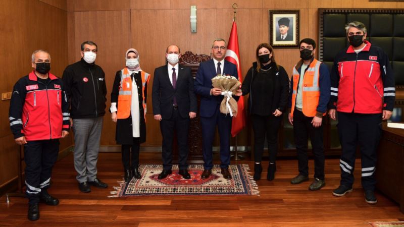 Başkan Hayrettin Güngör, Deprem Haftası dolayısıyla AFAD İl Müdürü Aslan Mehmet Coşkun ve yönetim kurulu üyelerini makamında ağırladı.