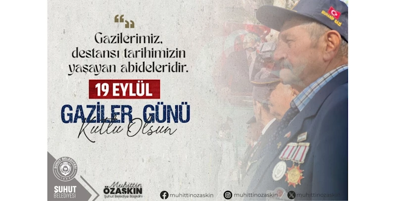 Başkan Muhittin Özaşkın, 19 Eylül Gaziler Günü vesilesiyle yayımladığı mesajda, "Vatanımızın bağımsızlığı ve milletimizin huzuru için canlarını ortaya koyan gazilerimiz, milletimizin onur kaynağıdır. Gazilerimiz, kahramanlıkları ve fedakârlıklarıyla bizlere emanet edilen değerlerimizin en büyük temsilcileridir. 19 Eylül Gaziler Günü vesilesiyle, başta Gazi Mustafa Kemal Atatürk olmak üzere, tüm gazilerimizi saygı, minnet ve şükranla anıyor; hayatta olan gazilerimize sağlık ve huzur dolu bir yaşam diliyorum." ifadelerine yer verdi.