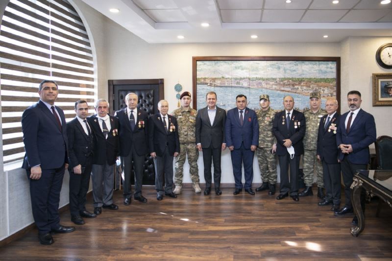 Mersin Büyükşehir Belediyesi, 3 Ocak Mersin’in düşman işgalinden kurtuluşunun 100. yılı dolayısıyla Azerbaycan’dan gelen Karabağ Savaşı’nda mücadele etmiş gazileri Mersin’de misafir etti. Mersin Büyükşehir Belediye Başkanı Vahap Seçer, kurtuluş törenlerinin ardından Azerbaycan’dan gelen gazileri makamında ağırladı. Başkan Seçer, “Biz gazilerimizden razıyız, umarım onlar da bizden razıdır” dedi. Ziyarette gazilerin yanı sıra; Azerbaycan Askeri Dernekler Başkanı Emin Hasanlı, Türkiye Muharip Gaziler Derneği Genel Başkanı Beyazıt Yumuk, Türkiye Muharip Gaziler Derneği Mersin Şube Başkanı Kemal Cındız, Büyükşehir Belediyesi Sosyal Hizmetler Dairesi Başkanı Serdal Gökayaz ile Şehit Aileleri ve Gazi Hizmetleri Şube Müdürü Cengiz Sevinç de yer aldı. Başkan Seçer; şehit ailelerine, gazilere ve gazi ailelerine önem verdiklerini belirterek, şunları söyledi: “2 yıl önce biz özel bir birim kurduk. Özel bir şube müdürlüğümüz var. Bu konularla ilgili Cengiz Bey de müdürümüzdür, bütün arkadaşlarımızla ilgilenir. Önemsiyoruz. Gazilerimizi seviyoruz. Şehit ailelerimize aynı şekilde saygı duyuyoruz. Dünyanın neresinde olursa olsun vatan toprağını öyle masa üzerinde oturduğunuz yerde birileri getirip size bağışlamıyor. Mutlaka mücadele etmeniz, bir bedel ödemeniz lazım. Canınızla, kanınızla, bedeninizle. Bunu yapan yurttaşlarımıza da bizim devlet olarak mutlaka sahip çıkmamız lazım. Kimseye muhtaç etmememiz lazım. Bu toplumların özünde olan bir durumdur. Onların geninde, kültüründe olan bir durumdur. Bizim kültürümüzde de şehidine, gazisine sahip çıkmak vardır. Onun için her cümlemizde Mustafa Kemal’i anıyoruz. Gazi diyoruz, Gazi Mustafa Kemal diyoruz.” Şehitleri minnetle andıklarının altını çizen Başkan Seçer, gazilerle ilişkilerinin de iyi olduğunu vurgulayarak, “Retorikte güzel ama uygulamada da onların yaşam koşullarını düzelterek, onlara imkanlar sunarak, onları kimseye muhtaç etmeyerek hayatlarını idame ettirmelerini sağlamamız lazım. İlişkilerimiz iyi. Biz gazilerimizden razıyız, Allah da onlardan razı olsun. Umarım onlar da bizden razıdır” dedi. “Azerbaycan halkını seviyoruz” ifadesi ile sözlerini sürdüren Başkan Seçer, “Zaman zaman Bakü’ye de gitmişliğim vardır. Çok önemli, değerli bir kent. Özellikle sanat yönünden çok takdir ettiğim bir halktır. Azerbaycan’daki kardeşlerimiz gerçekten bu anlamda da farklı bir yapıdadır. Çok teşekkür ediyorum ziyaretlerinizden dolayı. İnşallah her zaman birlikteliğimiz, beraberliğimiz böyle güzel duygularla devam etsin. Allah bir daha bize 3 Ocak’ları yaşatmasın. Ne gelsin düşman bizi işgal etsin, ne de biz böyle bir ulusal kurtuluş mücadelesi vermek zorunda kalalım. Tüm dünyada barış, huzur, kardeşlik içerisinde yaşayalım” diye konuştu. Mersin’de eksiksiz bir şekilde ağırlanmaktan büyük bir memnuniyet duyduklarını belirten heyet, Başkan Seçer’e misafirperverliklerinden dolayı teşekkür etti. Ziyaretin sonunda heyete ‘Pegasus’ figürlü tablo hediye eden Başkan Seçer’e heyet tarafından da üzerinde ‘Gazi’ yazılı kravat takdim edildi.