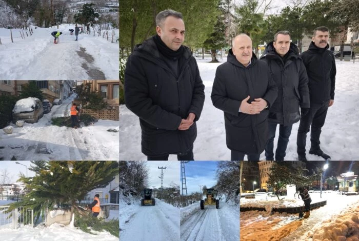 Yoğun kar yağışının ilçe genelinde bazı ağaçları devirdiğini de belirten Başkan Tavlı, “Yağan kar neticesinde ağaçlarımızda oluşan hasar ve devrilmelere ekiplerimiz anında müdahale ederek herhangi bir olumsuzluğun yaşanmasının önüne geçti. Bu süreçte bazı ağaçlarımız üzülerek ifade ediyoruz yıkıldı ve kırıldı. Ancak bu ağaçlarımızın yerine aynı şekilde yenilerinin dikilmesi konusunda çalışma başlattık. Mevsim şartlarının el verdiği andan itibaren ilk işimiz şehrimizin oksijen kaynağı olan bu ağaçlarımızın yerine yeni fidanların dikilmesi olacaktır” şeklinde konuştu.