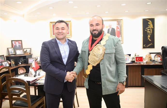 Alanya Belediye Başkanı Adem Murat Yücel, CW Enerji Türkiye Yağlı Güreş Ligi'nde şampiyon olan Başpehlivan Orhan Okulu'yu ağırladı. Türkiye Geleneksel Güreşler Federasyonu tarafından düzenlenen 7 etaplı uzun maratonda elde ettiği zaferlerle şampiyon olan ve altın kemer kazanan Başpehlivan Orhan Okulu, altın kemeri ile Alanya Belediye Başkanı Adem Murat Yücel'i ziyaret etti. Başkan Yücel, şampiyon güreşçiye gelenekler gereği tam altın taktı.