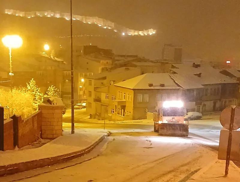 Kar yağışının başlamasıyla birlikte Bayburt Belediyesi karla mücadele ekipleri, ulaşımda aksama yaşanmaması için gece boyunca sahada görev yaptı.