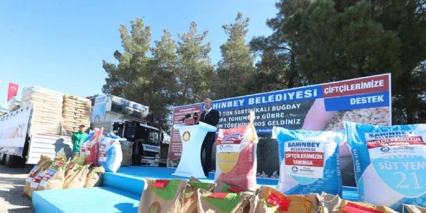 Belediyemiz Şahinbey İlçesi’ndeki çiftçilere bu zamana kadar 18.506.400 kg Buğday, Arpa, Mercimek Tohumu, 8.000 kg Yonca, İtalyan Çimi, 57.000 kg Silajlık Mısır Dağıtımı, 19.059.600 kg Gübre, 765.000 kg (46 Köy) Mera Gübrelenmesi, 44.587.950 kg Hayvan Süt Yemi Desteği, 750.000 adet Zeytin Fidanı, 150.000 adet Fıstık Fidanı, 15.000 adet Asma Fidanı ve 41.551.320 adet Sebze ve Meyve Fidesi dağıtımı gerçekleştirdi. Yapılan bu desteklerle Şahinbey İlçesi’nde ekili alan miktarı 4 kat arttı.