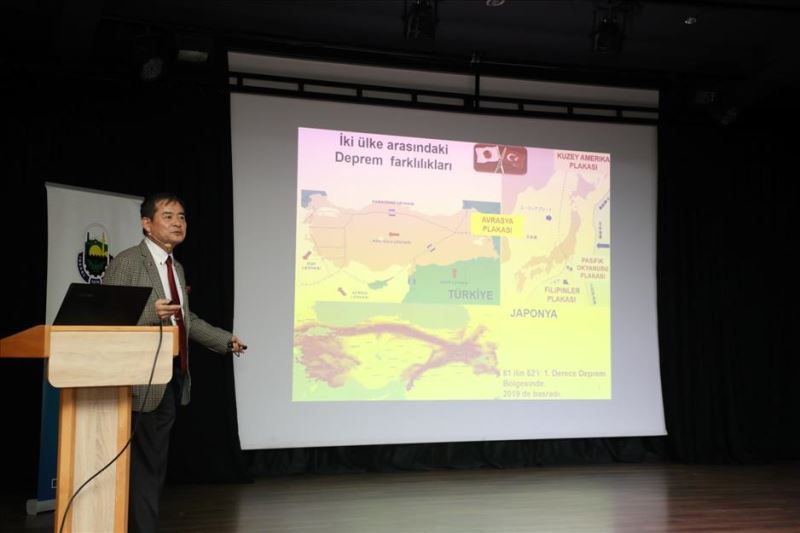 Türkiye’de 81 ilin 52’sinin 1. Derece deprem bölgesi olduğunu ifade eden Moriwaki, “Türkiye’de Kuzey Anadolu Fay Hattı, Doğa Anadolu Fay Hattı ve Batı Anadolu fay hattı var. Doğa Anadolu Fay Hattında uzun süredir deprem yoktu. Türkiye aynı Japonya gibi deprem ülkesi ama Japonya gibi çok fazla deprem yok. Büyük deprem Türkiye’de 1939 Erzincan 7,9 olarak yaşandı. Japonya’da 2011 yılında 9,1 deprem yaşandı. 8 ve 9 derecelerindeki depremlere baktığımızda rakamsal olarak bir kat sayı ancak güç olarak bakıldığında 32 kat daha fark olduğunu görüyoruz. Dünya’da en büyük deprem Şili’de oldu 9,5 büyüklüğünde. 10 şiddetine kadar da olabilir diye öngörülüyor. Ancak çok düşük ihtimal” dedi.