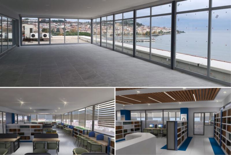 280 metrekarelik bir alanda hizmet verecek olan ve bir kısmı cam olan kütüphane modern mimarisi ve eşsiz manzarası ile dikkat çekiyor. 180 derecelik panoramik bir manzara imkânı sunan kütüphanenin bu konsepti ilgi çekmesi ve özellikle kitap okumaya teşvik etmesi bekleniyor.