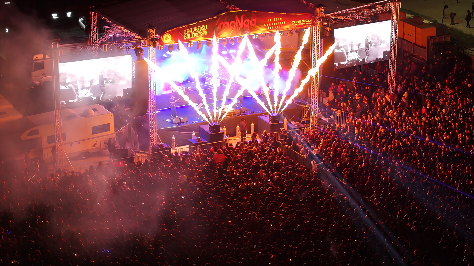Karaçayır Konser Alanı'nda düzenlenen Cumhuriyet Bayramı özel konserinde, rock grubu maNga sahne aldı. On binlerce kişinin katıldığı konserde grup, yaklaşık iki saat süren performansıyla Bolululara unutulmaz bir gece yaşattı. Konserin ilk bölümünde Bolu Belediye Başkanı Tanju Özcan ve eşi Meral Özcan, sahneye çıkarak maNga grubuna çiçek ve plaket takdim etti; ardından halkı selamlayarak Cumhuriyet Bayramı'nı kutladı.
