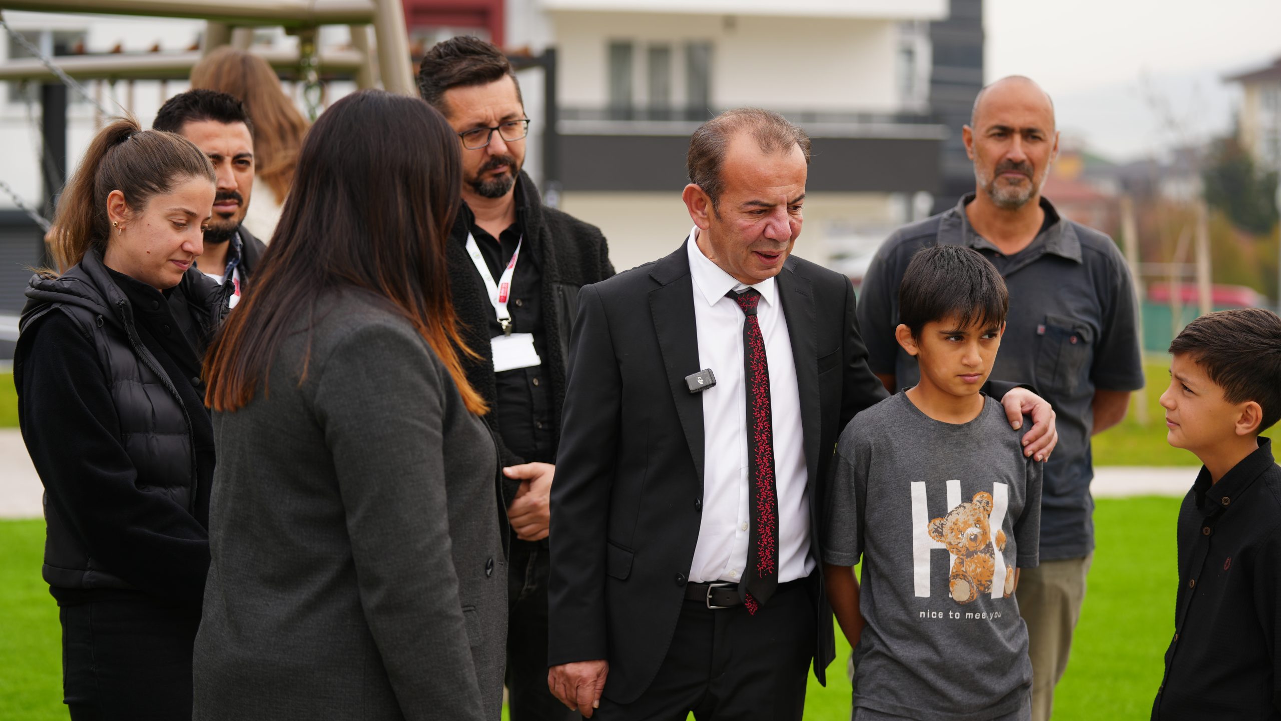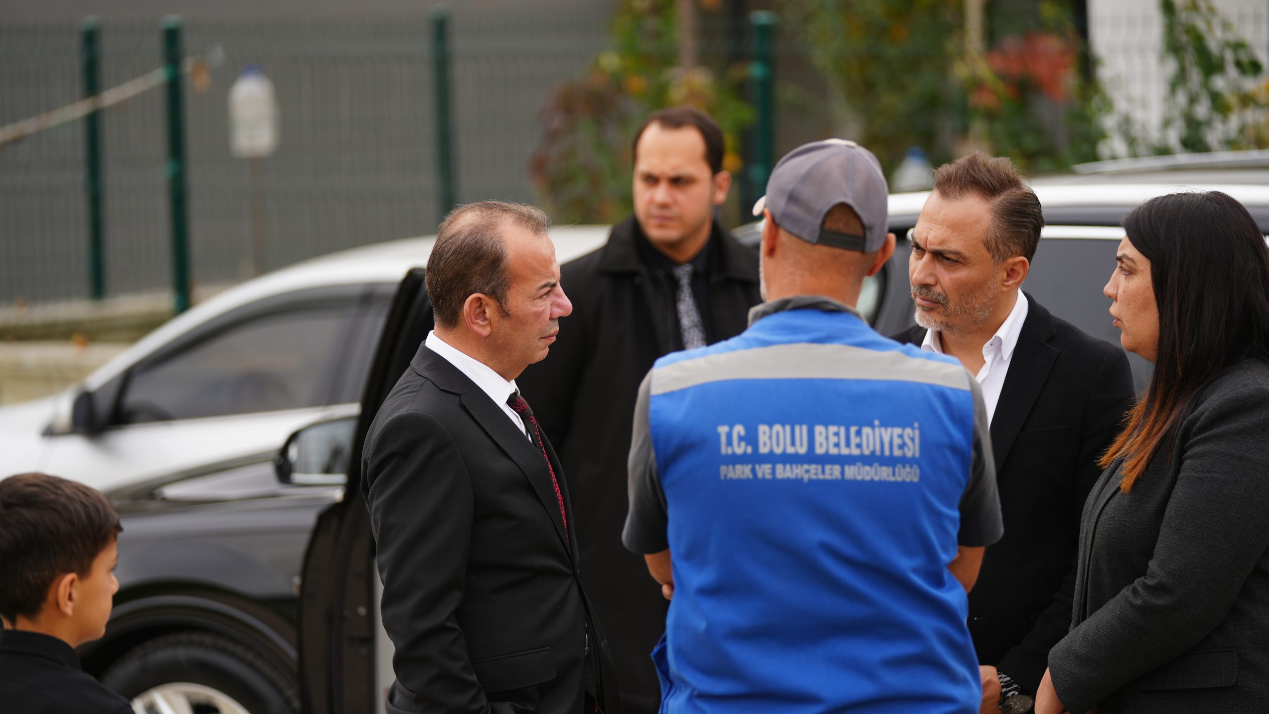 Bolu Belediye Başkanı Tanju Özcan, sentetik çim döşeme çalışmalarını yerinde inceledi ve vatandaşlara yeni uygulama hakkında bilgi verdi.
