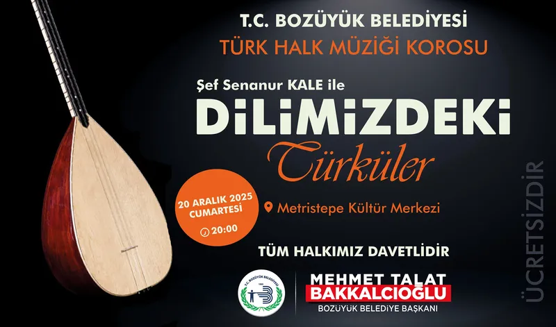 Bozüyük Belediyesi Türk Halk Müziği Korosu, sevilen türkülerden oluşan "Dilimizdeki Türküler" adlı özel konser programını dinleyicilerle buluşturacak. Konsere tüm halk davetlidir.