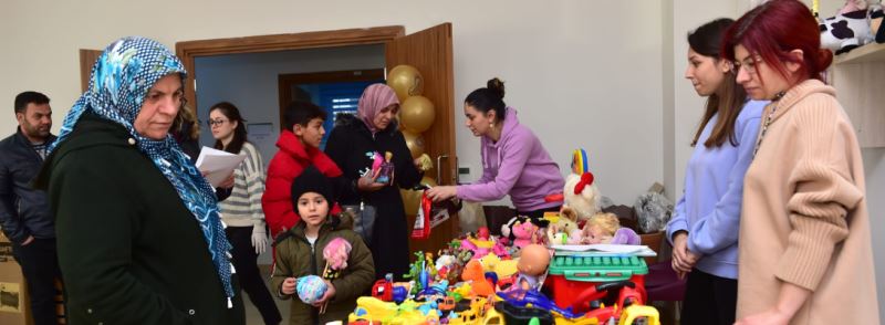 Butik-markete ilişkin bilgiler de veren Başkan Yardımcısı Ünüvar, “Butik-marketimizin çocuk odasında, aileler diğer alanlarda ihtiyaçlarını karşılarken çocukları burada zaman geçirebiliyor, belki havaları değişiyor. Ardından ihtiyaç duydukları oyuncak varsa alıp götürebiliyorlar. Oyuncak da çok önemli bir ihtiyaç. Bunun yanında kırtasiye malzemeleri de öyle. İsteyen vatandaşlarımız bu tür malzemeleri de buraya bağışlayabilirler. Giysi odamızda da belediye çalışanlarımız ve gönüllülerimiz yetişkin giysilerini kategorize ettiler. Depremzedelerimiz buradan gelerek ihtiyaçlarını alabiliyorlar. Öte yandan, gıda marketimiz ve hijyen malzemelerinin bulunduğu bölümlerimiz de var” dedi.