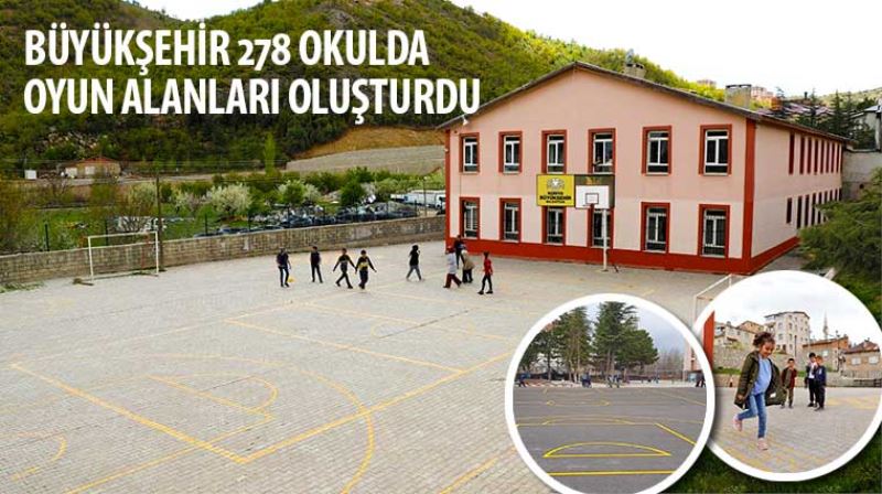 Konya genelinde 278 okulda spor sahası, oyun alanı ve sıra çizgi çalışması yapan Büyükşehir, yapılan bu çalışma ile birlikte ilkokul, ortaokul ve liselerde gençlerin ve çocukların kaliteli zaman geçirmesini sağlıyor.