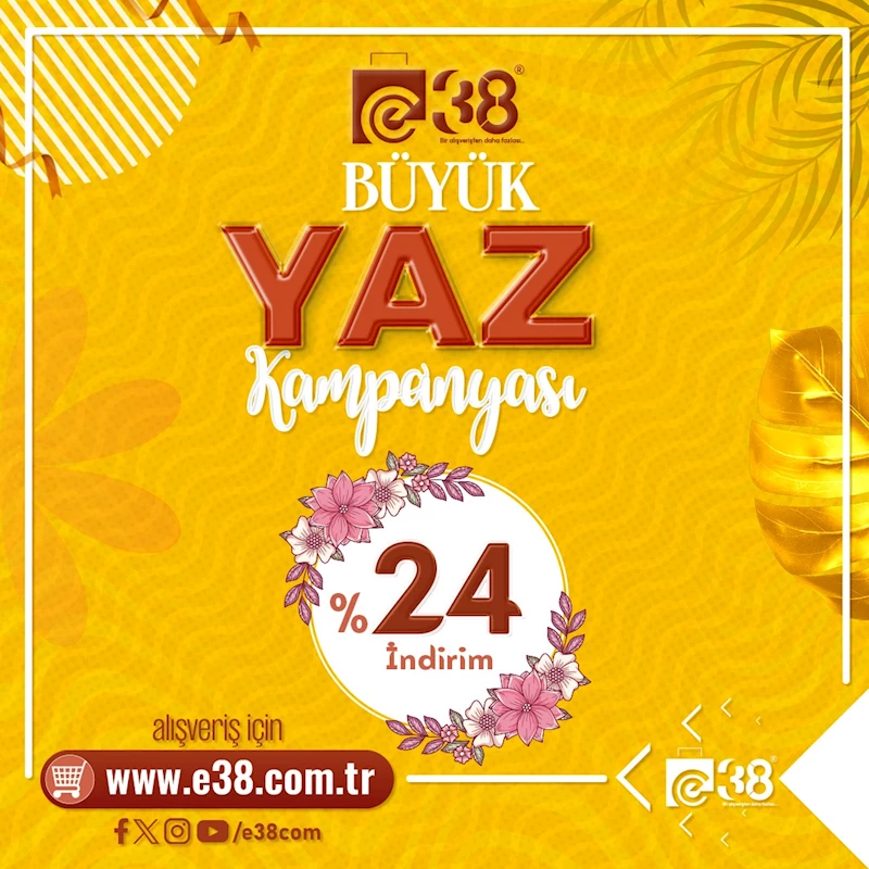 ‘E 38'den alışveriş sepetlerini dolduracak büyük yaz kampanyası. Haydi alışverişe’ sloganı ile kampanyasını duyuran KAYMEK vatandaşlara, e 38 markalı ürünlerde yüzde 24 indirim fırsatı sunuyor.