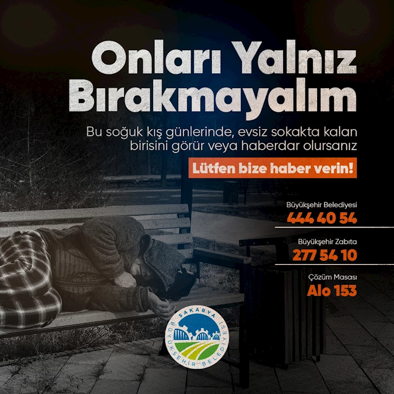 Yapılan paylaşımda tüm Sakaryalılara, sokakta zor durumda kalan insanları fark ettiklerinde Büyükşehir Belediyesi’ne bildirmeleri çağrısı yapıldı.