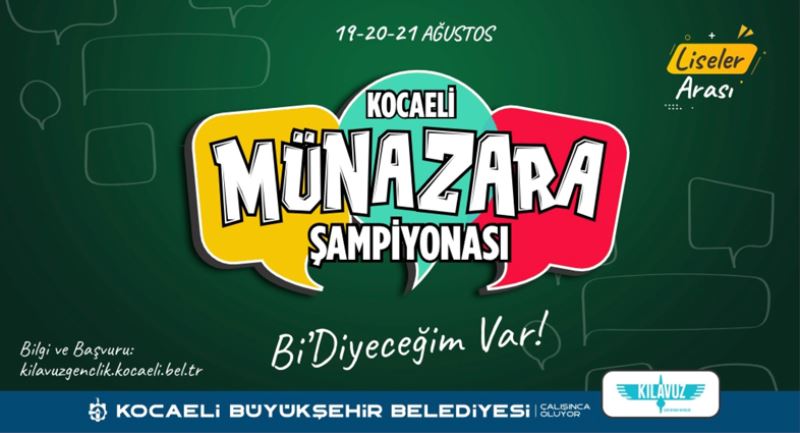 Kocaeli Münazara Şampiyonası 19-20 Ağustos 2023 tarihlerinde münazara turnuvaları yapılırken 21 Ağustos 2023 tarihinde SDKM’de Final Müsabakası yapılacak. Lise öğrencilerine yönelik olarak hazırlanan organizasyonda herhangi bir okul kotası bulunmadan başvurular https://kilavuzgenclik.kocaeli.bel.tr/Munazara.aspx adresi üzerinden online olarak alınırken 16 Ağustos 2023 tarihinde ise yarışma öncesi katılımcılara bilgilendirme toplantısı yapıldı.