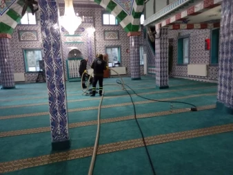 Vatandaşların ibadetlerini temiz ve hijyenik bir ortamda yapabilmelerine olanak sağlayan Batman Belediyesi, ibadethane temizlik aracıyla ilçelerde bulunan tüm cami, mescit ve Kur’an-ı Kerim kurslarının da halılarını gül kokulu deterjanla yıkayıp, dezenfekte ediyor.