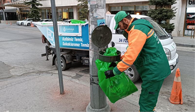 İlçe genelindeki çöp toplama ve sokak temizliği çalışmalarını düzenli olarak sürdüren Çankaya Belediyesi temizlik işçileri, toplu temizlik ile de sağlıklı bir kent ortamı için çalışıyor. Belediye ekipleri vatandaşların konteyner kenarlarına bıraktıkları ağaç budama atıkları ve yatak, mobilya gibi eşyaları ayrıca topluyor. Toplu temizlik çalışmalarının yanı sıra sokakları ve konteynerleri dezenfekte eden ekipler, bozulan konteynerleri de onarıyor. Yayaların kolaylıkla kullanabileceği kompozit çöp poşetleri de düzenli olarak değiştiriliyor.