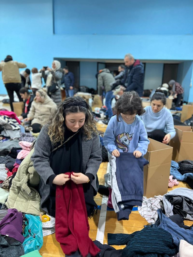 Yardım noktalarından biri de Bağcılar Belediyesi Şehit Savcı Mehmet Selim Kiraz Kültür Merkezi’ydi. Spor salonunda toplanan ihtiyaç malzemeleri, vatandaşlar tarafından kolilere yerleştiriliyor. 4 yaşındaki Simay da annesi ve babasıyla kışlık giyecekleri katlayarak düzenli bir şekilde paketliyor. Minik Simay’ın bu örnek davranışı çevresindeki herkesi duygulandırdı. Melike ve Barış Sayın, her akşam kızları Simay’la buraya gelerek yardım çalışmalarına destek verdiklerini söyledi.
