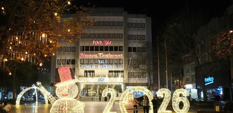 Çorlu Belediyesi, 2026 yılına girmeden önce kent genelindeki yılbaşı ışıklandırmaları ve süsleme çalışmalarını tamamladı. Meydanlar ve ana arterler, rengarenk ışıklarla donatılarak yeni yıl atmosferi oluşturuldu.