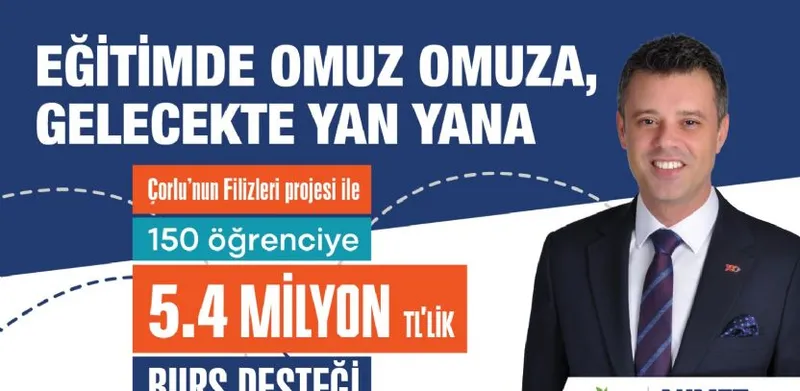 Çorlu Belediyesi, ihtiyaç sahibi üniversite öğrencilerine yönelik hayata geçirdiği "Çorlu'nun Filizleri" projesi kapsamında önemli bir destek sağlıyor. 2025–2026 eğitim öğretim yılında, aileleri Çorlu'da ikamet eden 150 öğrenci karşılıksız burs almaya hak kazandı.