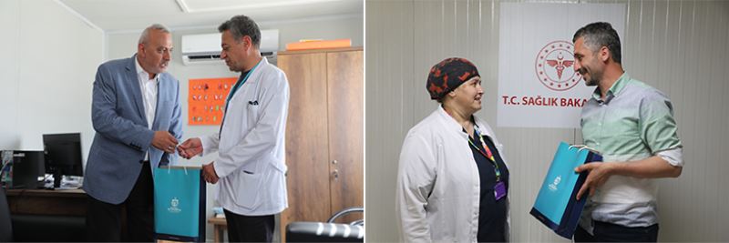 Kahramanmaraş’ta yaşanan iki büyük depremin ardından Hatay’ın Defne ilçesinde 20 gün içinde tamamlanan Kocaeli Büyükşehir Belediyesi Hastanesi, bölge halkına kesintisiz hizmet vermeye devam ediyor. Büyükşehir yetkilileri, 54 yataklı ve yıllık 250 bin hasta kapasitesine sahip hastaneye bayram ziyaretinde bulundu. Hastane Başhekimi Mehmet Kahraman nezdinde tüm hastane çalışanlarına Başkan Tahir Büyükakın'ın bayram tebriklerini ileten Büyükşehir yetkilileri, tüm personele çikolata hediye etti.