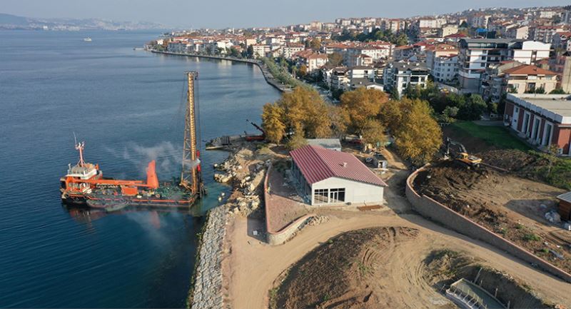 Kocaeli Büyükşehir Belediyesi, Gölcük Değirmendere’de yapımına başladığı kayık-çekek yeri için kazık çakma çalışmalarını sürdürüyor. 4 sabit, 3 yüzer iskelenin yapılacağı kayık-çekek yeri için toplam 100 kazık çakılacak.