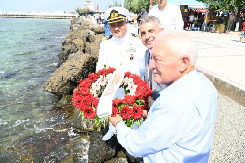 Belediyemiz Sosyal Tesislerin 1’in önünde başlayan etkinlikler, Kaymakamımız Emre Öztürk, Garnizon Komutanı Deniz Albay Ömer Karakaş ve Belediye Başkanımız Eyüp Yılmaz'ın Deniz şehitlerimiz adına denize çelenk sunumlarıyla devam etti.